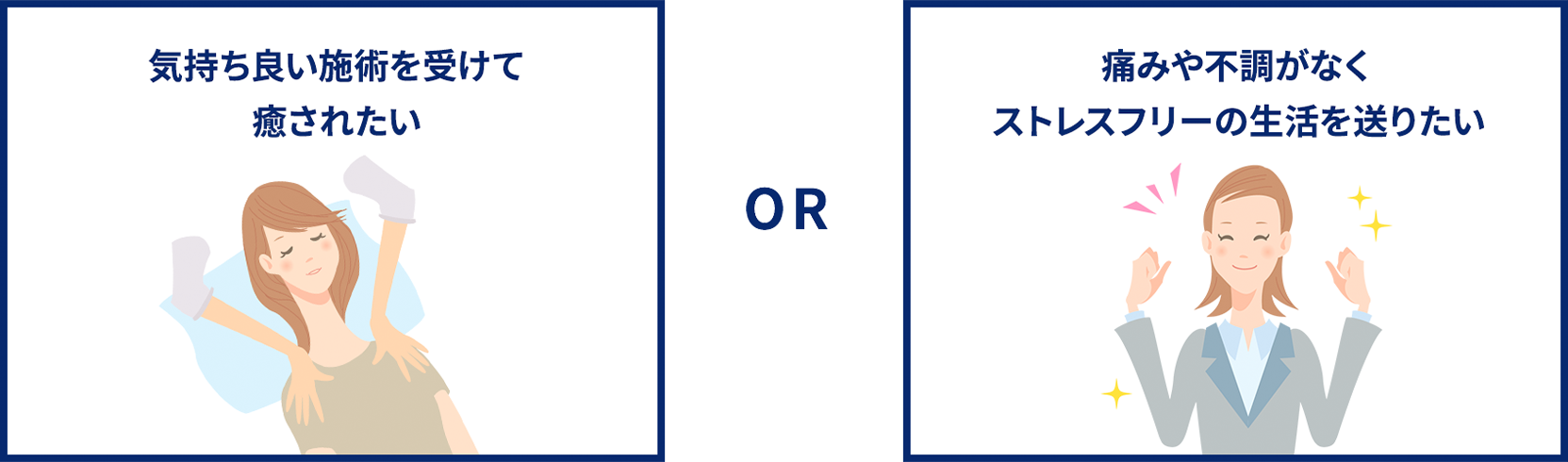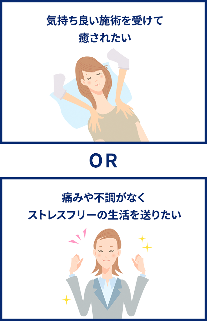 リラクゼーション目的のマッサージや癒やしを提供するような施術をお求めの場合、当院の施術ではお役に立てません。